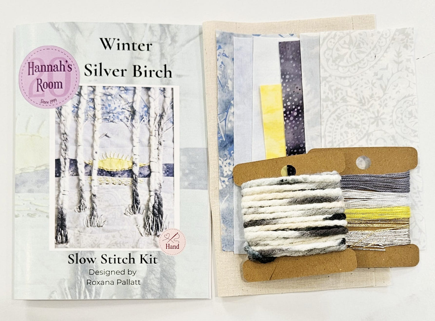 Bring the stillness of a frosty morning to life with Winter Silver Birch, the final instalment of our Seasonal Birch series. Layer cool-toned batik fabrics, couch soft woollen birch trunks, and add frosted silver branches and a golden sunrise with simple, mindful stitches.